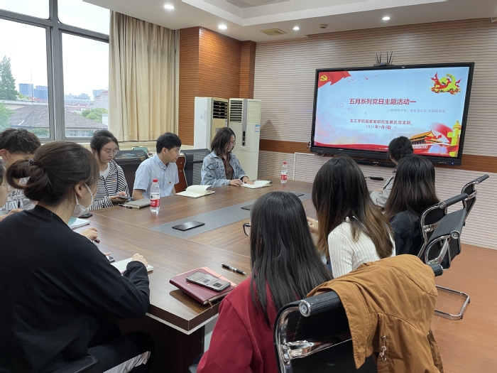 54日下午,国重室研究生第五党支部于实验十八楼302室开展主题党日活动,活动内容主要分为四个部分:拜读劳动模范事迹,分享读后心得体会;重温百年五四故事,牢记榜样意气风发;赓续先辈精神血脉,凝聚青年党员力量;主持人对活动总结发言。