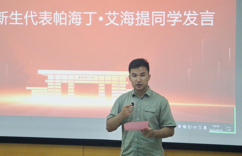 生物化工专业帕海丁•艾海提作为新生代表发言,讲述了自己在华理生工美高梅官方赌场的成长和收获,并表达了生工学子志存高远、报效祖国的信心和决心。