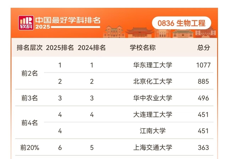 10月15日,2025软科中国最好学科排名正式发布,我校生物工程学科再度荣膺学科排名全国第一,生物工程学科的顶尖地位得到进一步巩固与广泛认可。