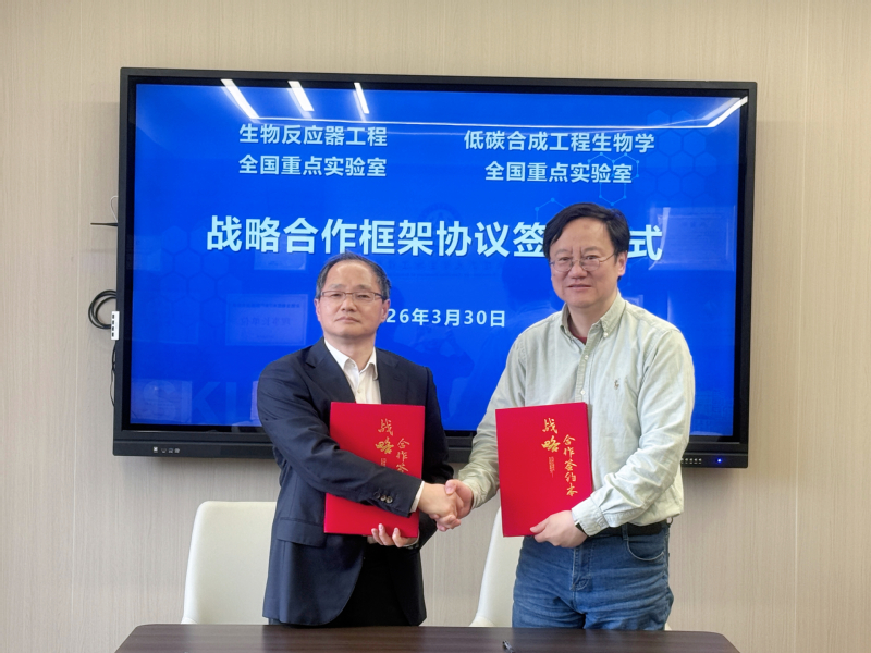 3月30日,生物反应器工程全国重点实验室与低碳合成工程生物学全国重点实验室正式签署战略合作框架协议。生物反应器工程全国重点实验室主任叶邦策、低碳合成工程生物学全国重点实验室主任张以恒分别代表双方签字,标志着两大国家级科技创新平台进入深度协同、融合发展的新阶段。
